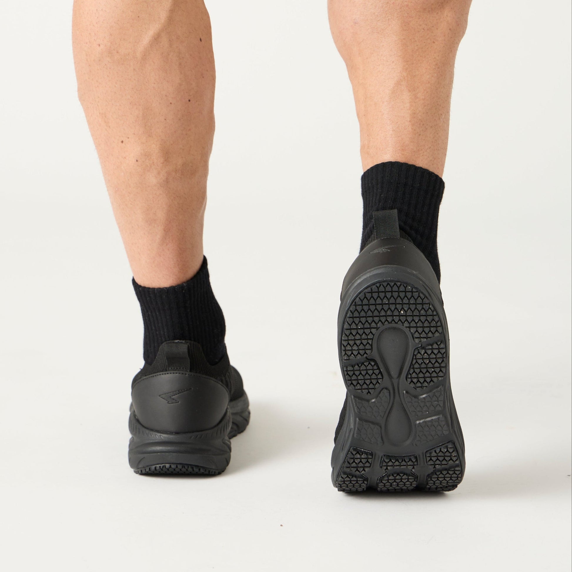 Take on every day with the Wayfarer Men’s Lifestyle in tough Black/Black, built for comfort and durability. The lightweight knitted upper provides breathable support, while the memory foam insole and supportive heel cushioning deliver stability and all-day comfort. Backed by an EVA midsole and hard-wearing TPR outsole, it’s ready for both active days and everyday wear.
